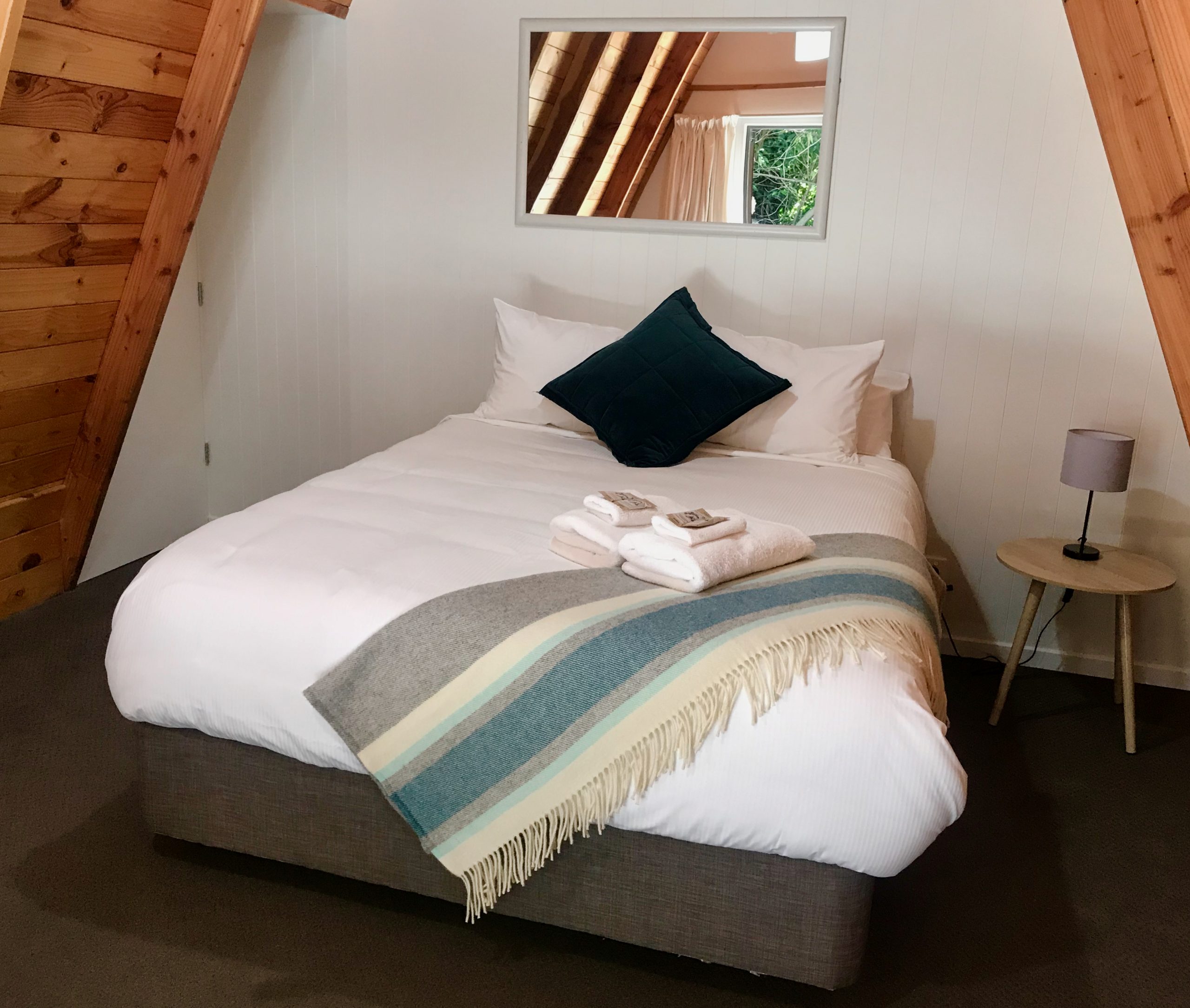 These newly renovated studio chalets are perfect for couples. They feature a queen bed, tea and coffee, toaster and a private bathroom. The chalets are surrounded by native trees and tucked away in a quiet corner of Wonderland.